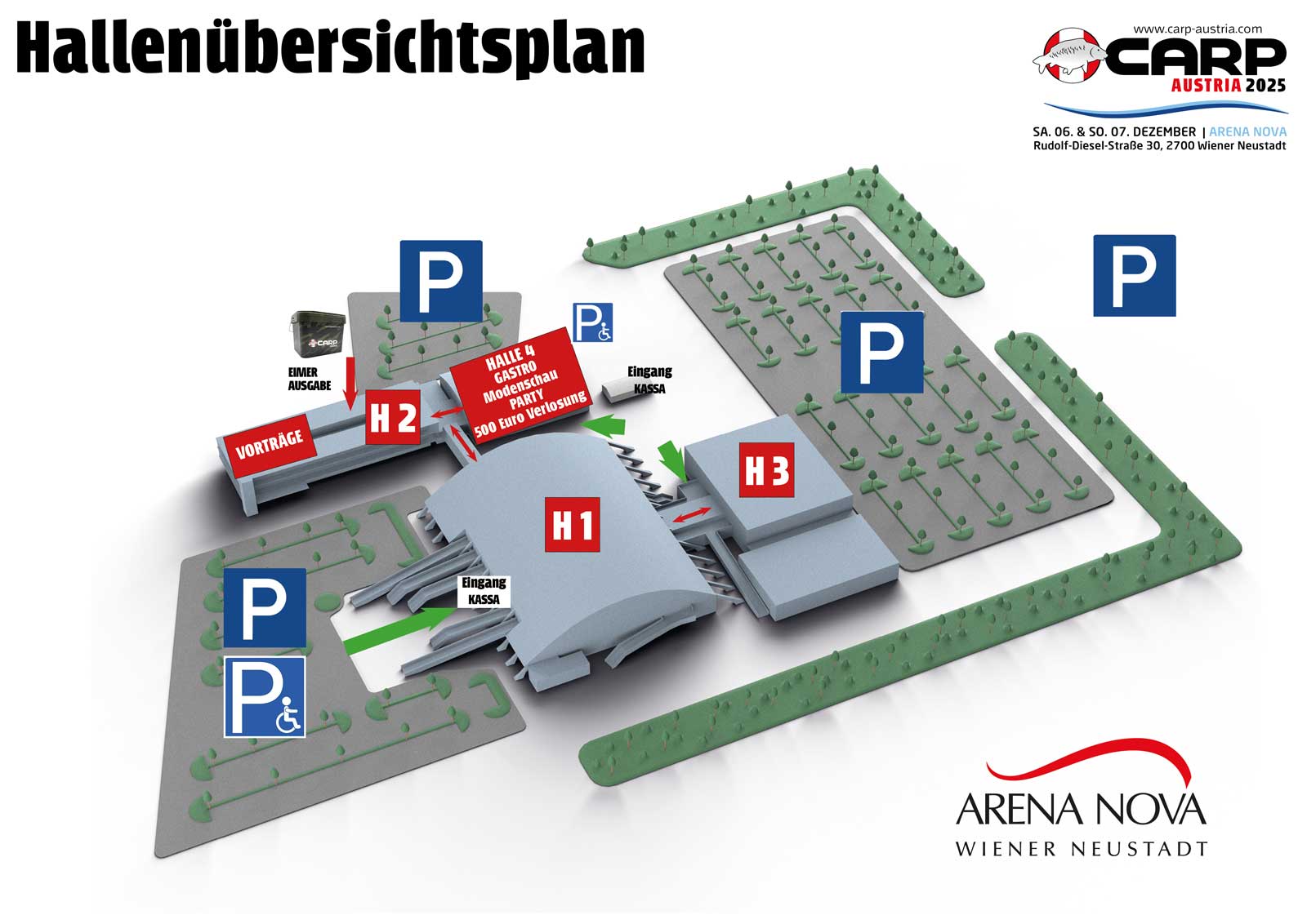 Die Hallenpläne werden laufend aktualisiert. – The hall plans are continuously being updated.